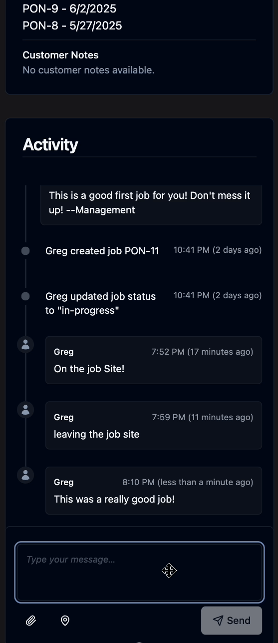 Add status updates, progress notes, or upload photos as you go.
